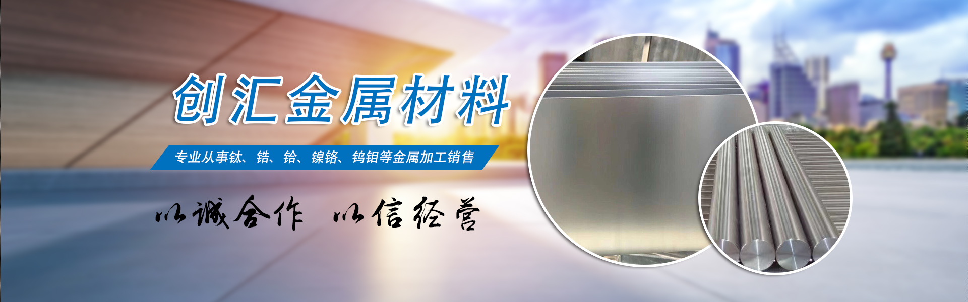 寶雞市創(chuàng)匯金屬材料有限公司,位于有“中國鈦谷”之稱寶雞寶鈦路南段,這里也是國家重點支持和扶持的有色金屬材料資源產(chǎn)業(yè)基地,我司專業(yè)從事鈦、鋯、鉿、鎳鉻、鎢鉬、鉭鈮、合金材料、復(fù)合材料,板、棒、絲、管、箔材等,設(shè)備制造,金屬制品機械加工銷售。